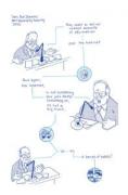 My thesis is a collection of comics, but the main project is a comic on understanding the internet. The idea behind it is that we talk a lot about the problems with the internet—issues regarding net neutrality, cyberwarfare, privacy, and surveillance—without actually understanding what the internet is or how it works. We use all sorts of contradictory metaphors to describe the internet—clouds and tubes and streams—when really it’s made out of physical, commercially owned wires running through buildings and underground and under the ocean. The comic weaves in the colonial history of the telegraph cable and 1960s military computers to provide a bit of context for what the internet is and how it got here. I’ve had CCS alum Andy Warner ′12 as my thesis advisor, and he’s been an amazing support throughout the process.